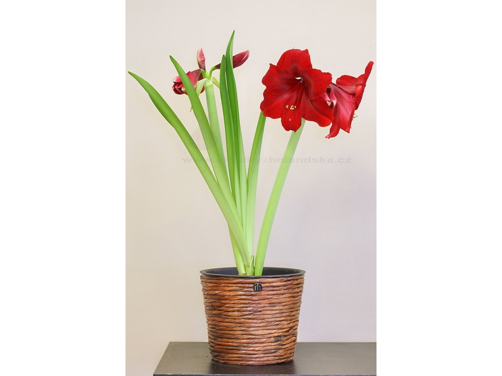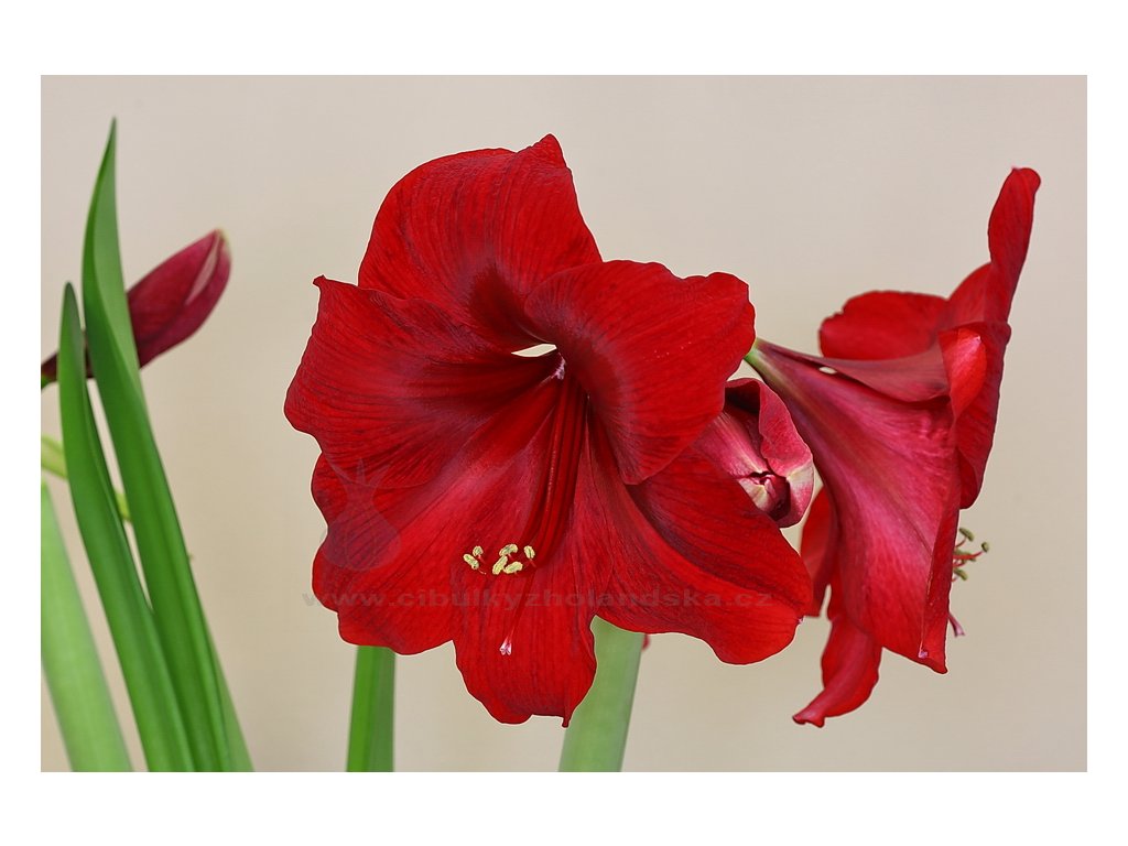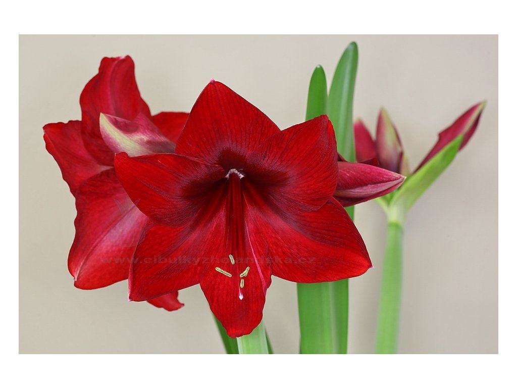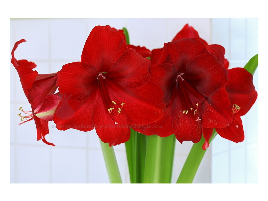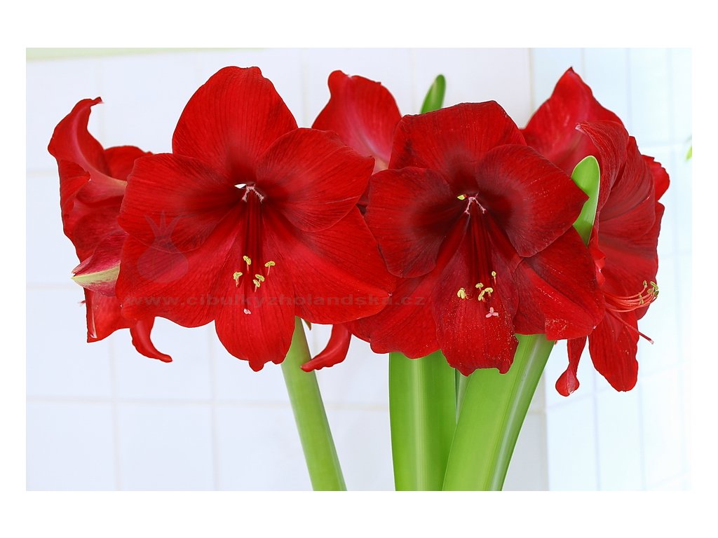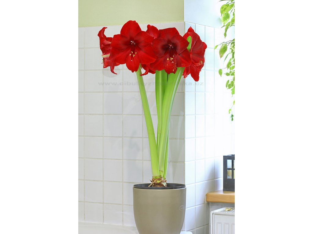 Tato krásná amarylka má veliké květy (22 cm) velmi tmavě červené barvy. Podmanivá.