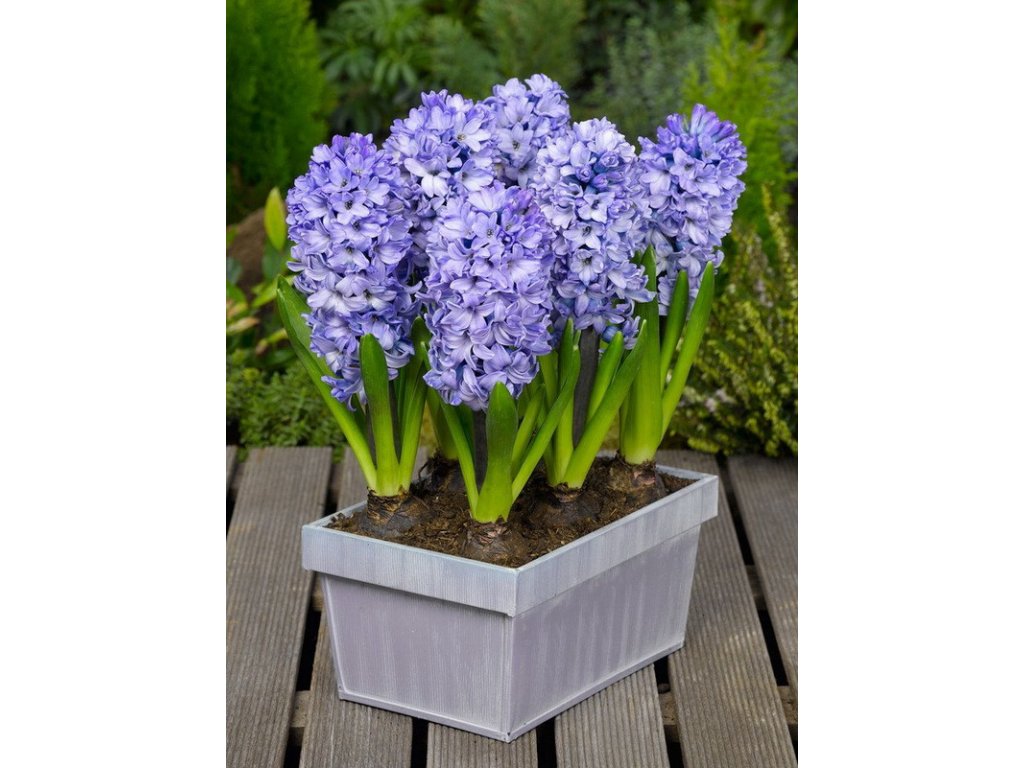 Jeden z nejvoňavějších hyacintů! Odrůda, která okamžitě vynikne svými jemnými modrými květy, jež odpovídají barvě vistárie. Pěkně kontrastují s tmavým stonkem a hodí se i do květináčů.