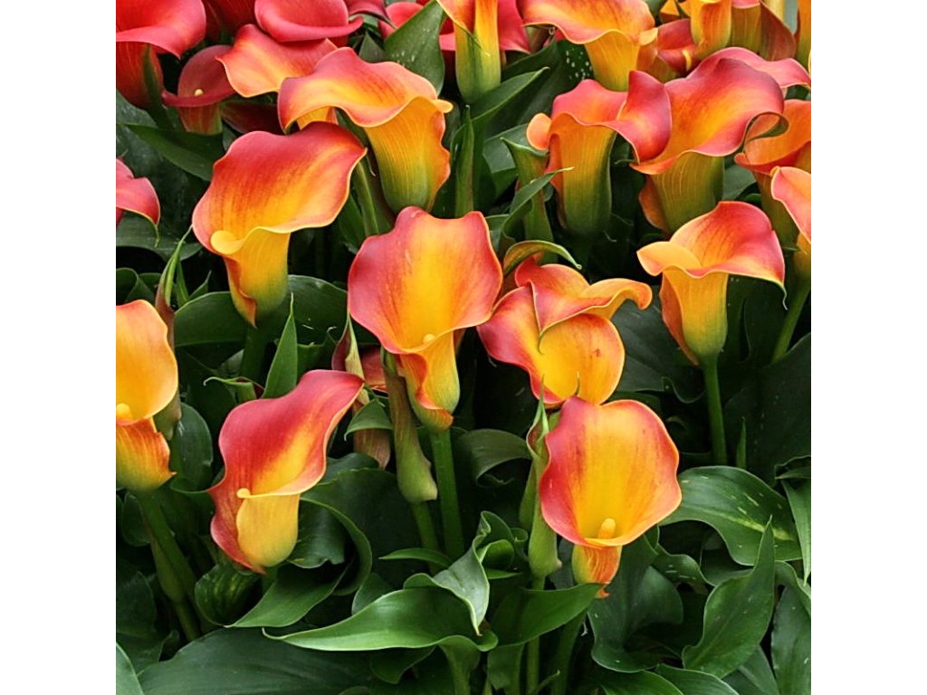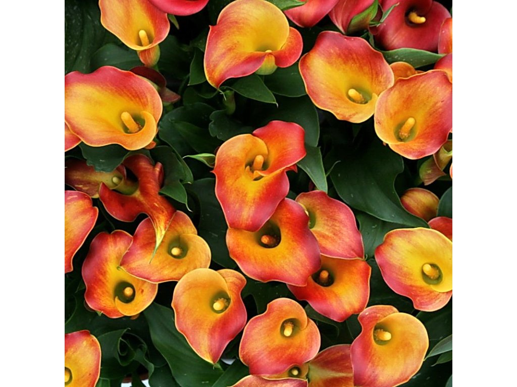 Kala Osorno je v barvě žlutooranžového plamenu. Stále oblíbenější pokojová rostlina, jak na terase, tak na parapetu. Pro co nejdelší kvetení po celé léto je důležité pravidelné hnojení v období květu.