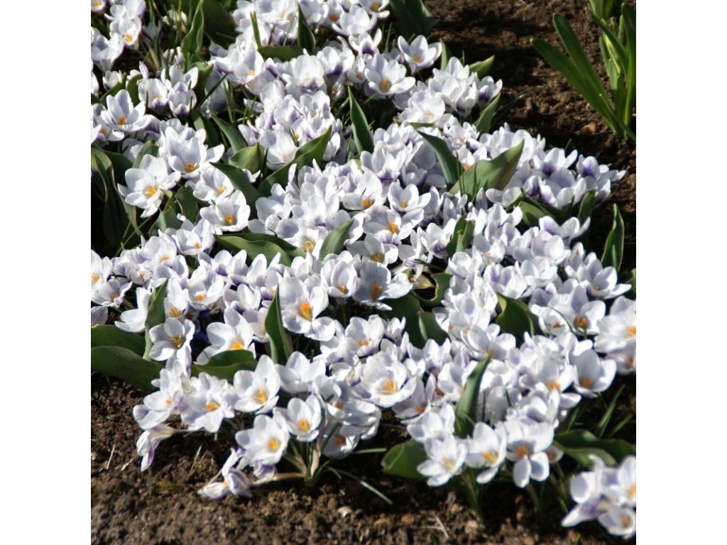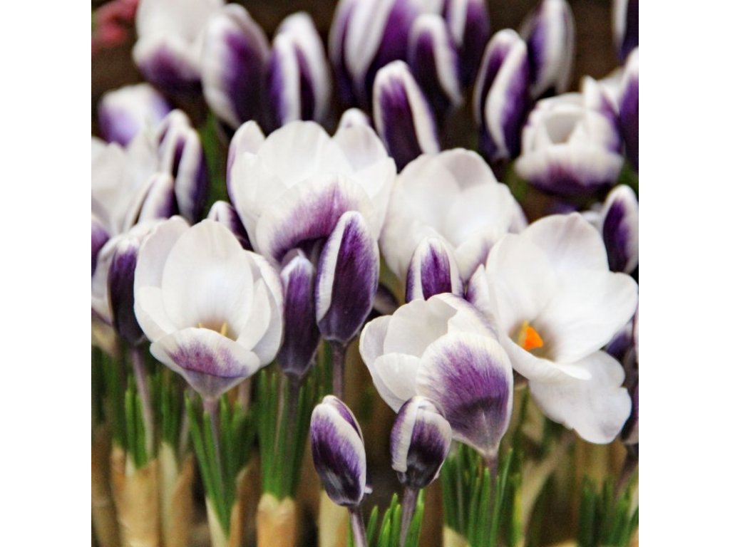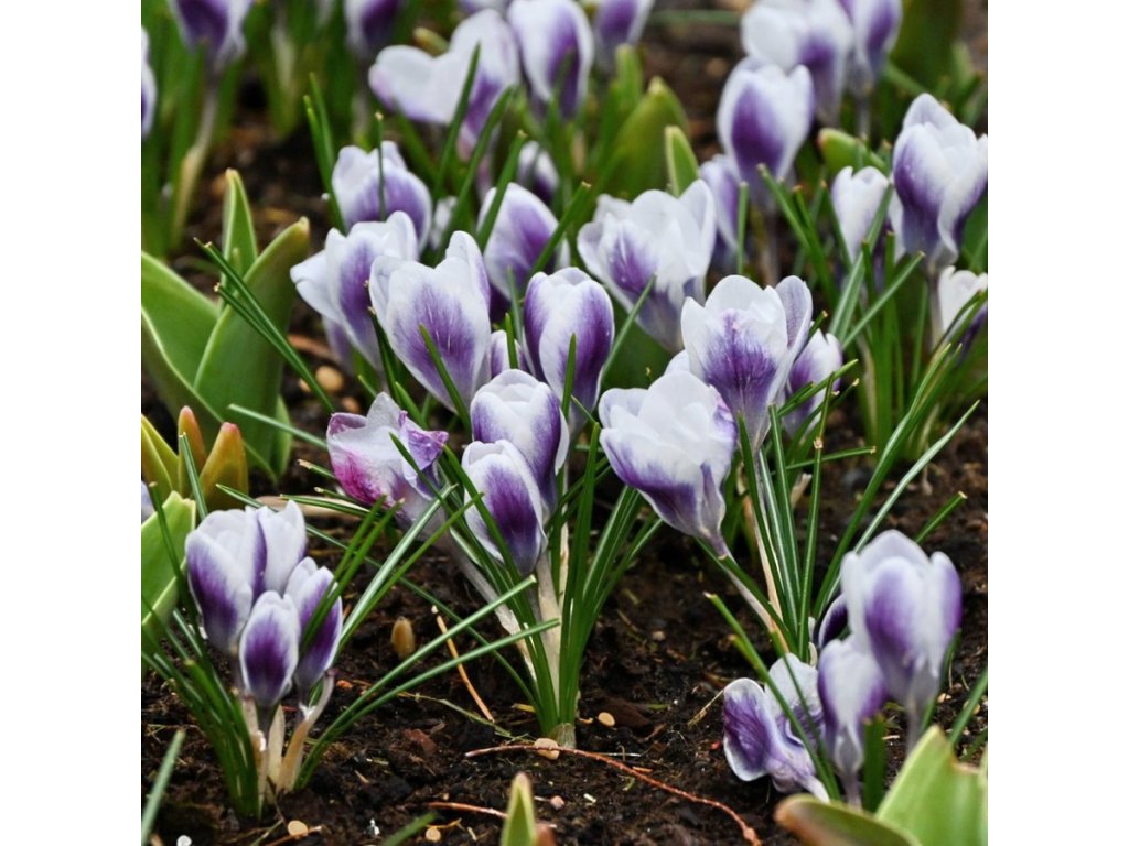 Malokvětý krokus, fialový s bílou barvou na okrajích, uvnitř bílý.