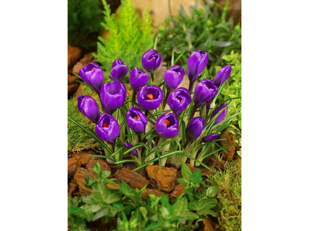 Intenzivní fialovo-purpurové květy. Velkokvětý krokus jarní. Vysoký 15-20 cm.
