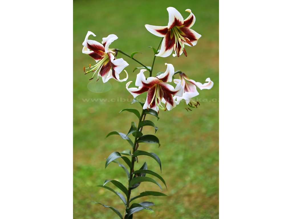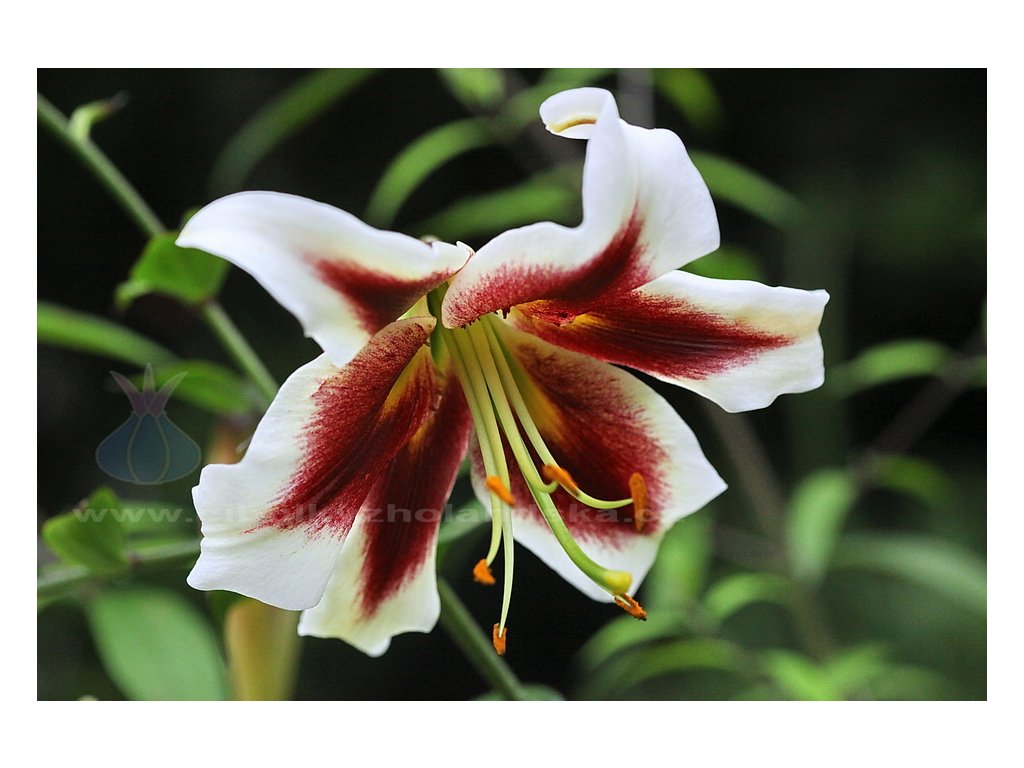 Stromová lilie. Unikátní zahradní OT hybrid. Barevná paleta velikých bílých květů s kontrastními, velmi sytě vybarvenými, karmínově rudými až magentově purpurovými středy s kontrastními brčálově zelenými nektáriemi s jemným zlatožlutým středem. V prvním roce hladce dosahuje výšky přes 1 metr, ve dalších letech i více než 180 cm.