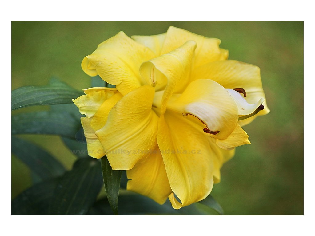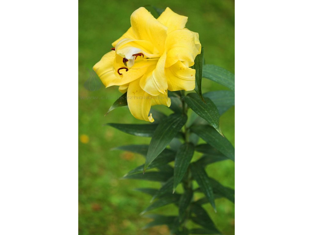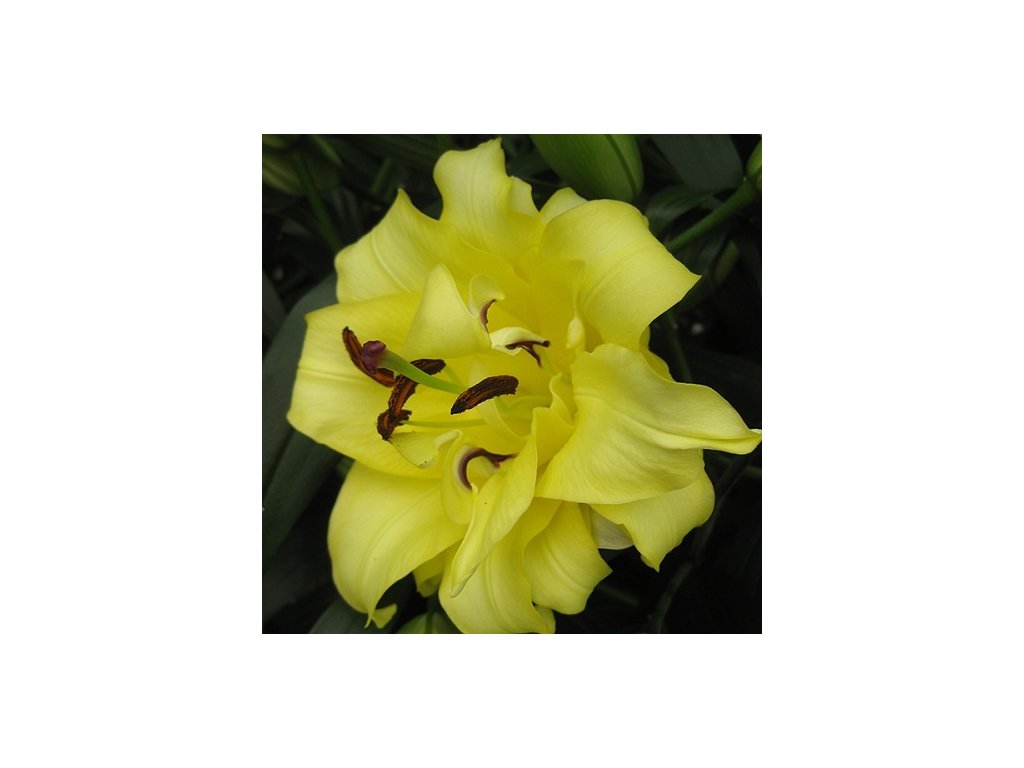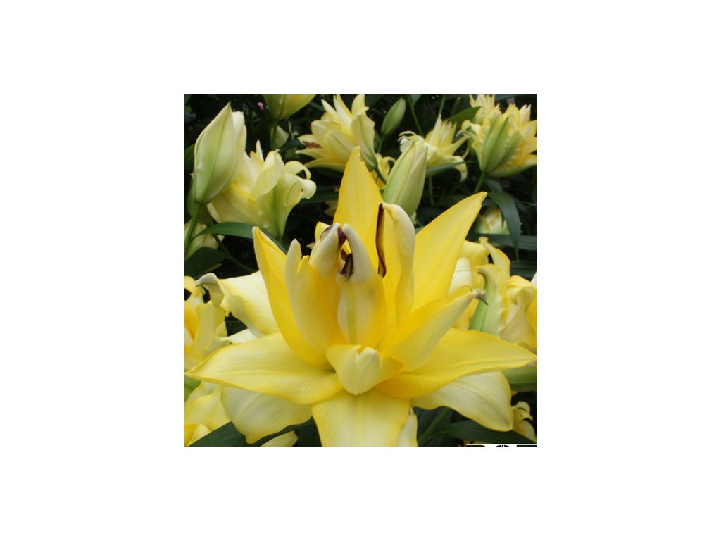 Žlutá plnokvětá lilie, patří mezi stromové lilie (OT hybrid), dorůstá do výšky i přes dva metry.
