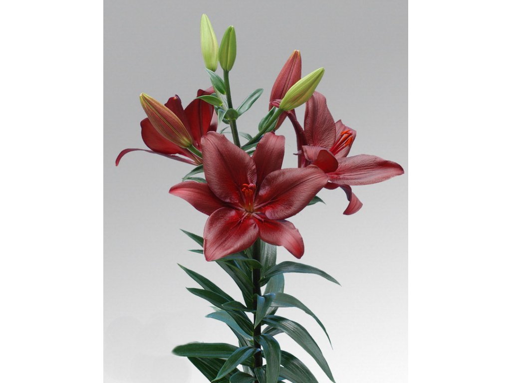 Tmavě červená lilie. Velké květy lehce voní. Veliké cibule 18/20 cm.