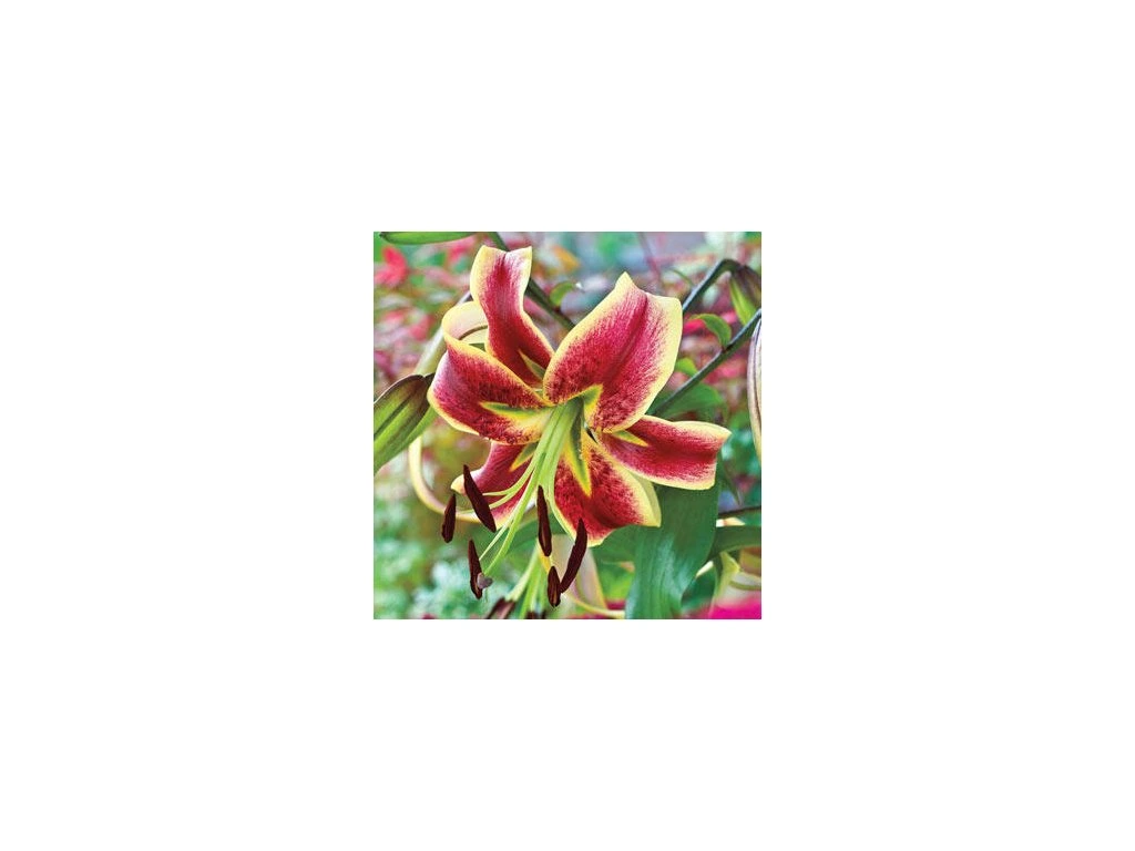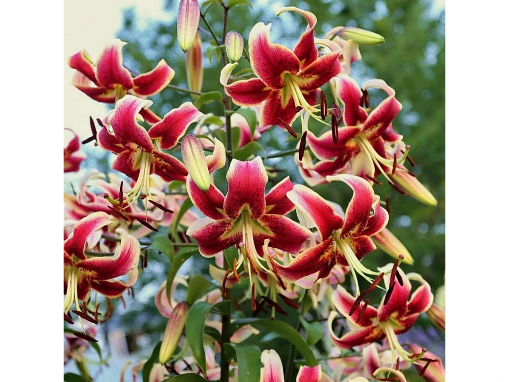 Velká, silná a voňavá stromová lilie s velkými červenými květy s krémově žlutými okraji. Dlouho kvete a dorůstá do výšky 250 cm !
