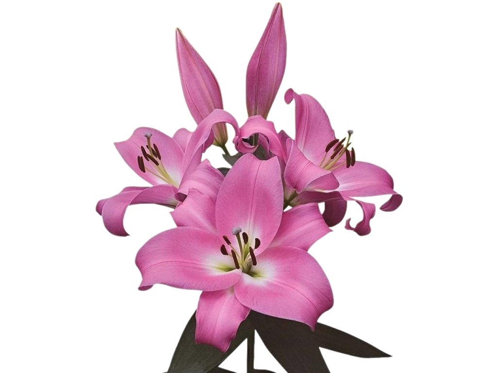 Levandulově růžové květy s výrazným bílým středem. Velké cibulky 18/20 cm.