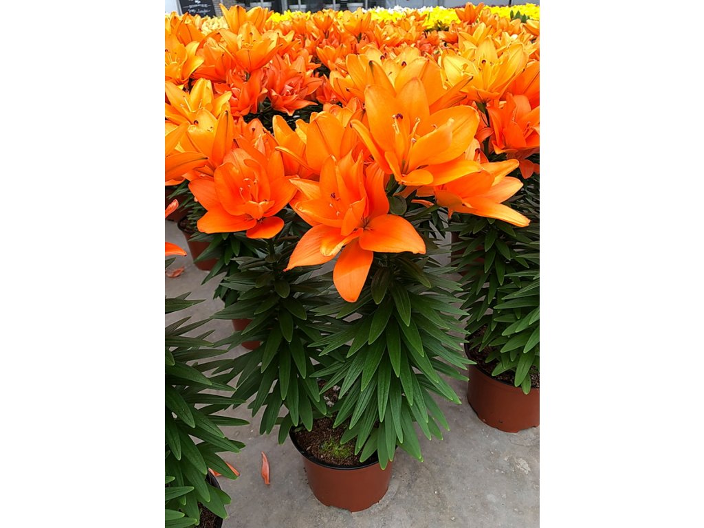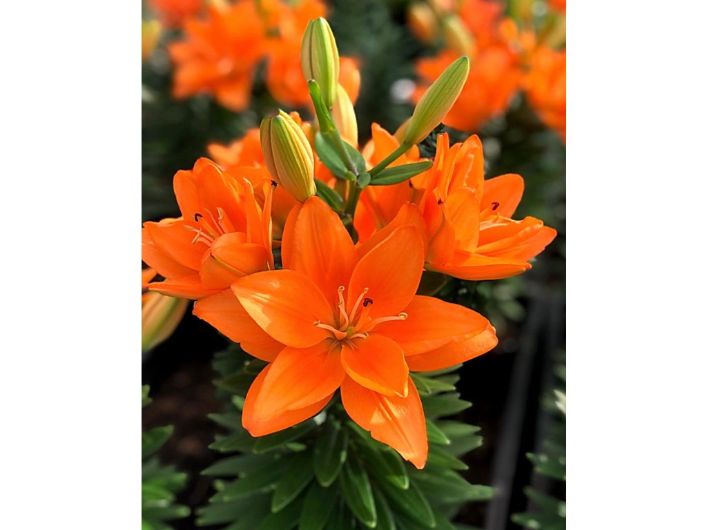 Nádherná asijská lilie, která se pyšní zářivě oranžovými plnými květy a dodá vaší zahradě nebo interiéru výrazný a veselý nádech. Má kompaktní až střední růst a dosahuje výšky 40 cm, takže je ideální do květináčů a malých prostor.