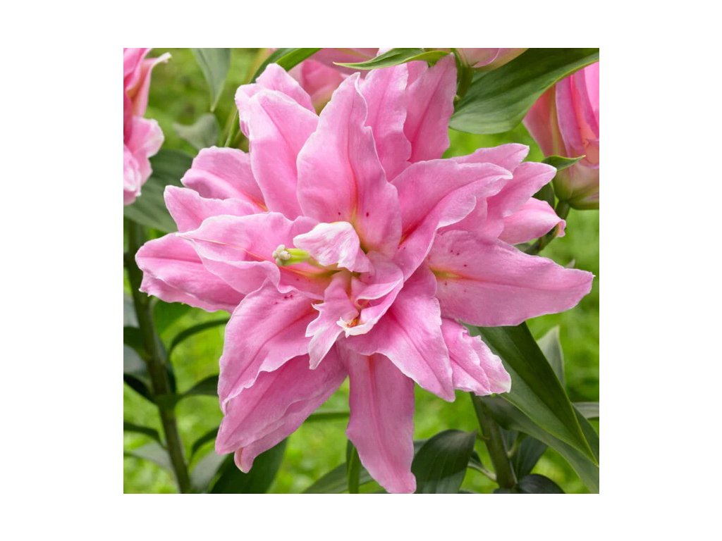 Plnokvětá růžová orientální lilie. Voňavá a bez pylu.
