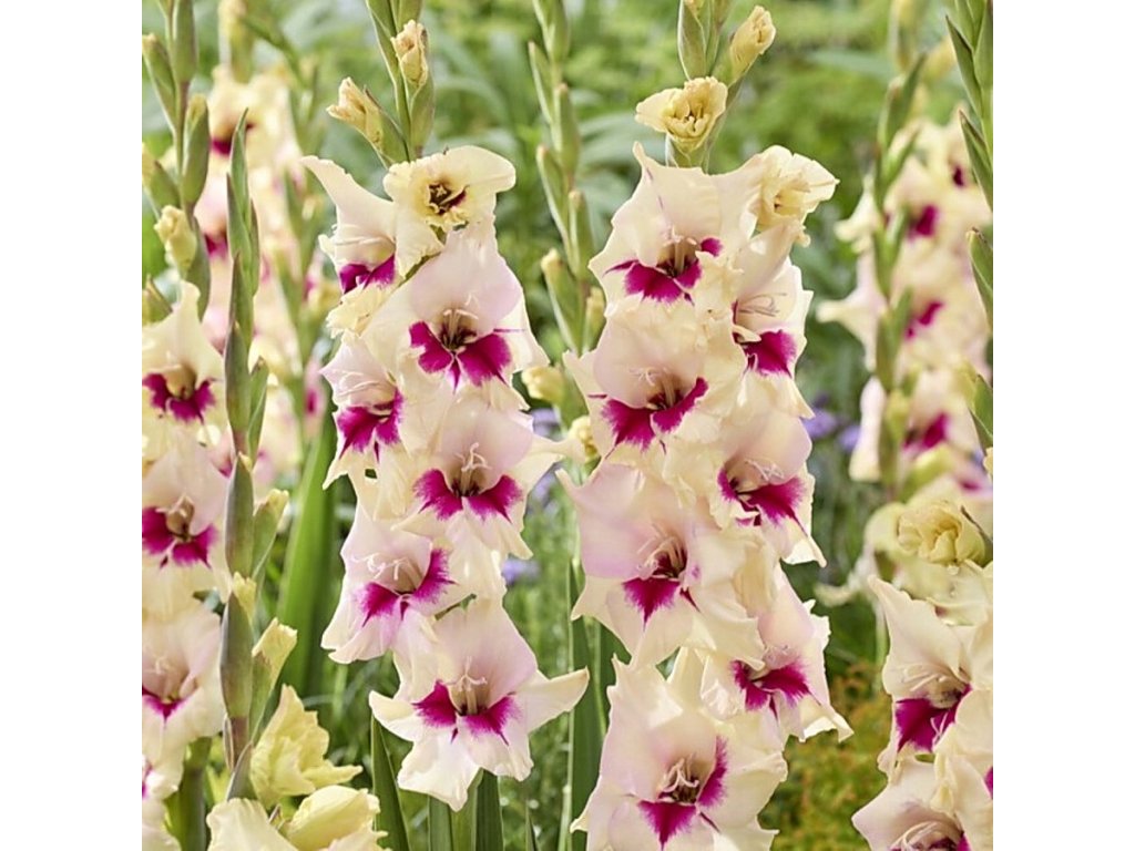 Velkokvětý, jemně žlutý s fialovým okem s dobrým poměrem stonku, listů a květních klasů. Perfektní a působivá řezaná květina. Habitus rostliny vytváří krásné vertikální akcenty v květinovém záhonu.