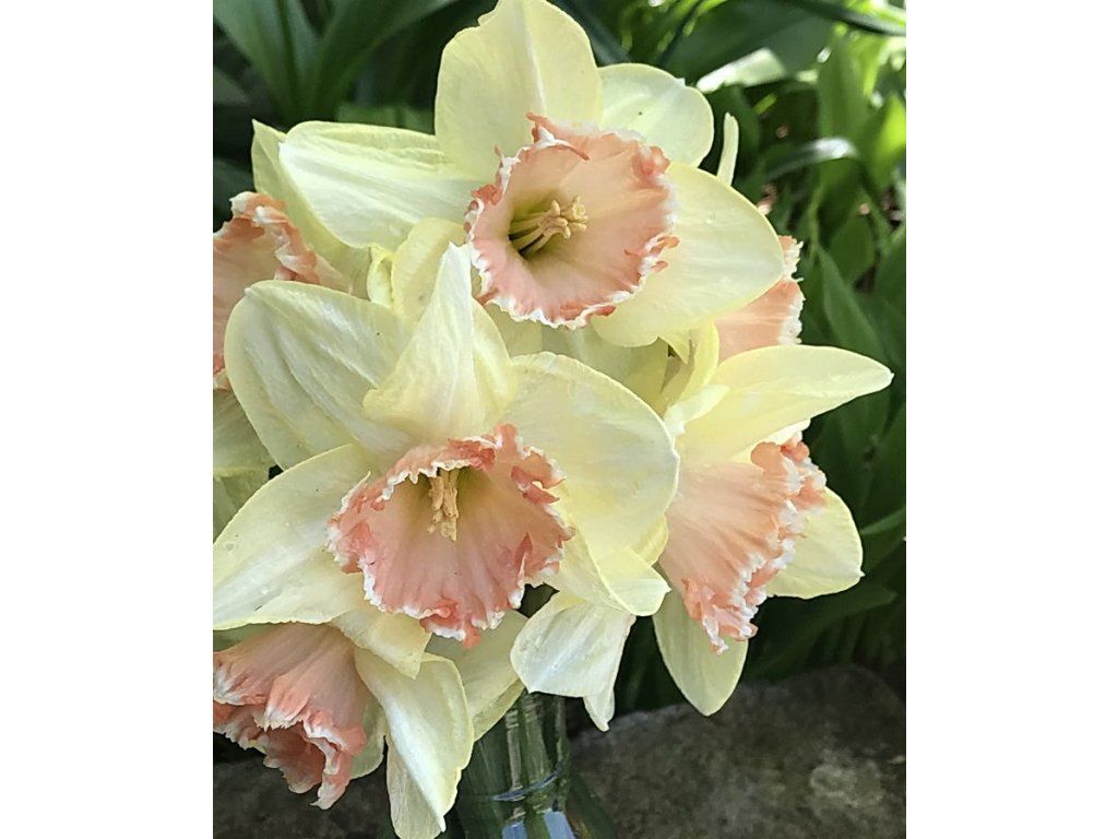 Tento vzácný hybrid od Janis Ruksans z roku 2001 má hvězdicovitý, bledě žlutý okvětní plášť s bílými nádechy a proměnlivými, jasnějšími okraji okvětních lístků v citronově žluté barvě. Jeho kalichovitá koruna má snovou meruňkově růžovou barvu s výrazně žebrovanými a volánkovitými okraji v tmavší meruňkově růžové barvě, které jsou půvabně poseté bílými skvrnkami. Velké cibulky 14/16 cm.