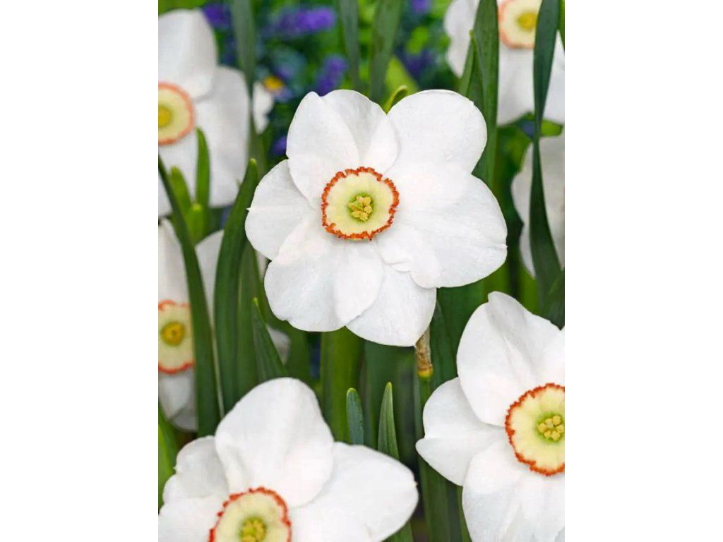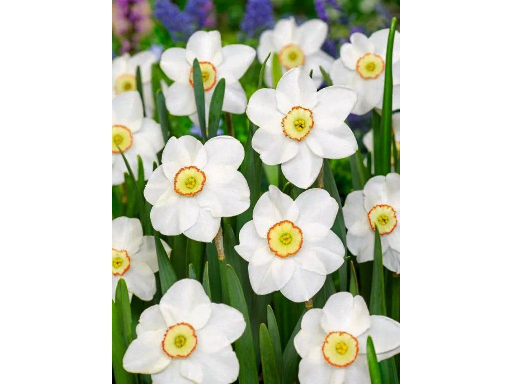 Dreamlight je bílá narciska s malým kalichem a jemným oranžovým lemem. Kvete v dubnu a květnu a je ideální do slunných záhonů nebo jako řezaná květina. Veliké cibulky 14/16 cm.