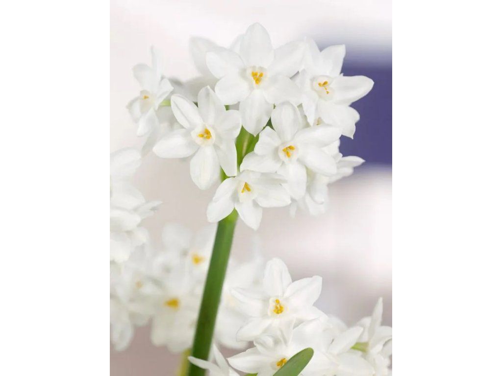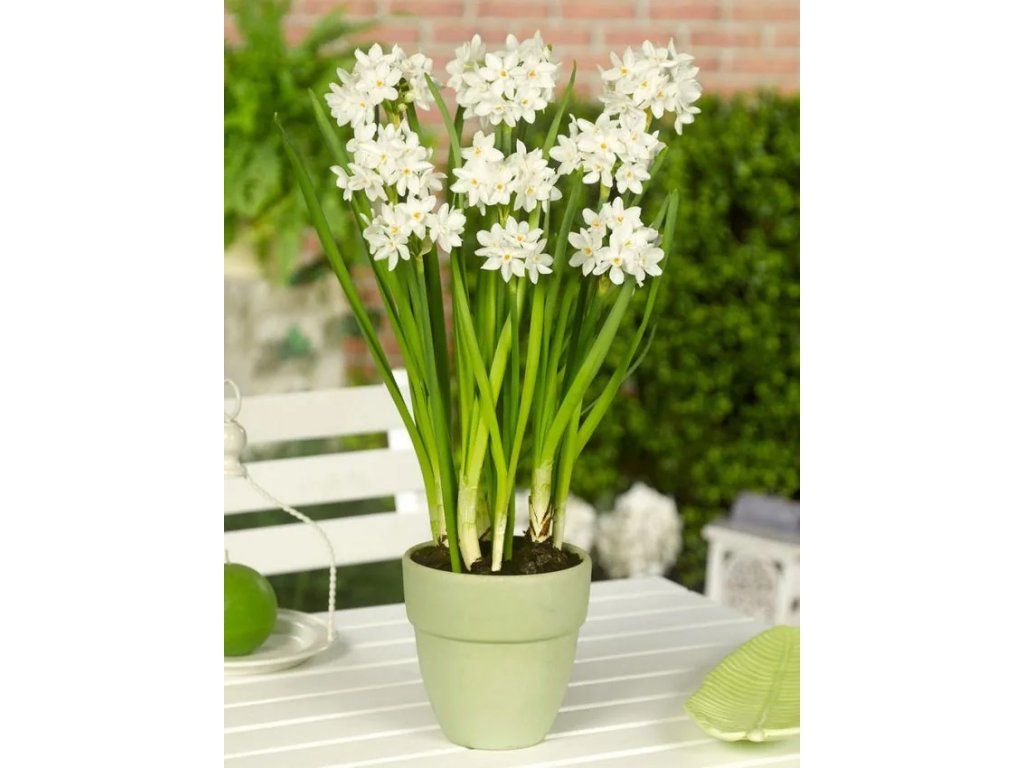 Tento narcis odrůdy Ziva nebo Paperwhite vytváří několik zcela bílých květů, které nádherně voní. Cibulky jsou speciálně upraveny tak, aby je bylo možné předpěstovat v interiéru, a díky tomu kvetou mimořádně brzy (dokonce i ve vodě). Tip: Po odkvětu cibulky zasaďte na zahradu.