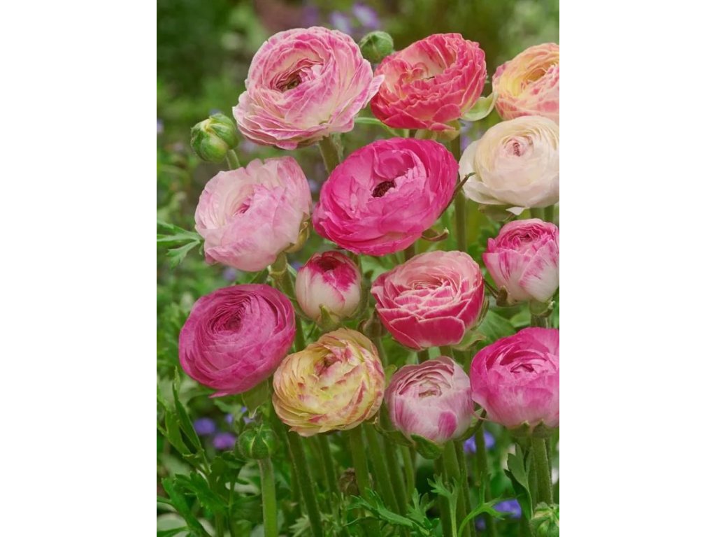 Pryskyřník asijský, plnokvětý. Barevná směs v růžových odstínech.