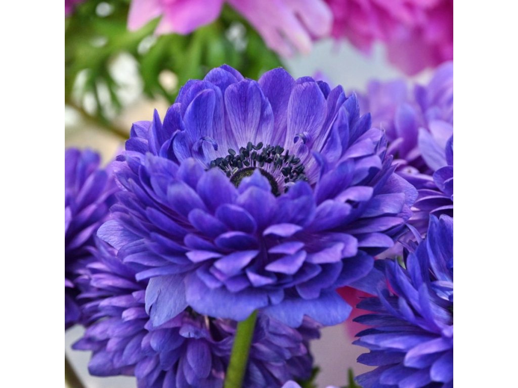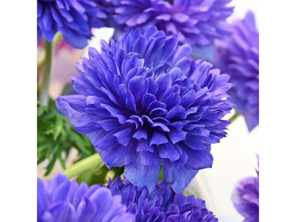 Modrá italská sasanka. Atraktivní tvar, plné květy. Nejznámější jako řezané květiny, ale také vhodné do zahrady. V zimě lehce zakrýt.