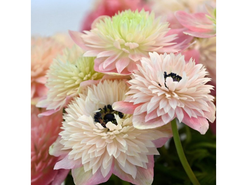 Italské sasanky v růžových odstínech. Atraktivně tvarované, plné květy. Nejznámější jako řezané květiny, ale také vhodné do zahrady. V zimě lehce zakrývejte.