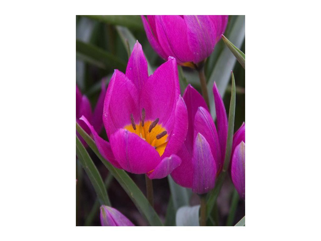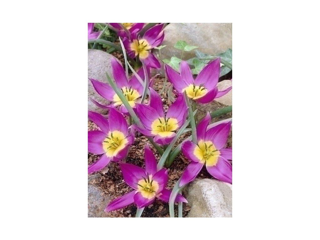 Tento tulipán v purpurové barvě s výrazným žlutým středem, je velmi ranný, vysoký 10 cm. Ideální do skalky, do trávníků, i pro pěstování v květináčích.