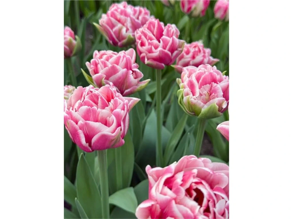 Krásný plnokvětý růžový tulipán s bílými okraji. Veliké cibulky 12/+ cm !