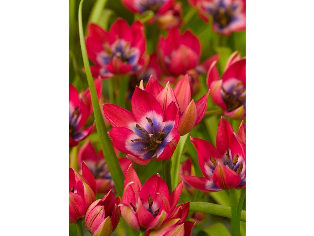Pro tuto krásku se vždy najde místo. Roztomilé jasně růžové květy s bílým a chrpově modrým srdcem. Botanické nízké tulipány ze skupiny pulchella/humilis vytvářejí několik květů na jednu cibulku a jsou ideální pro zplanění a lze je pěstovat v květináčích.