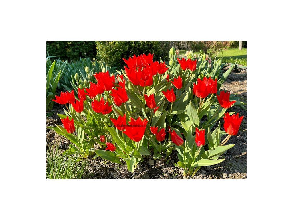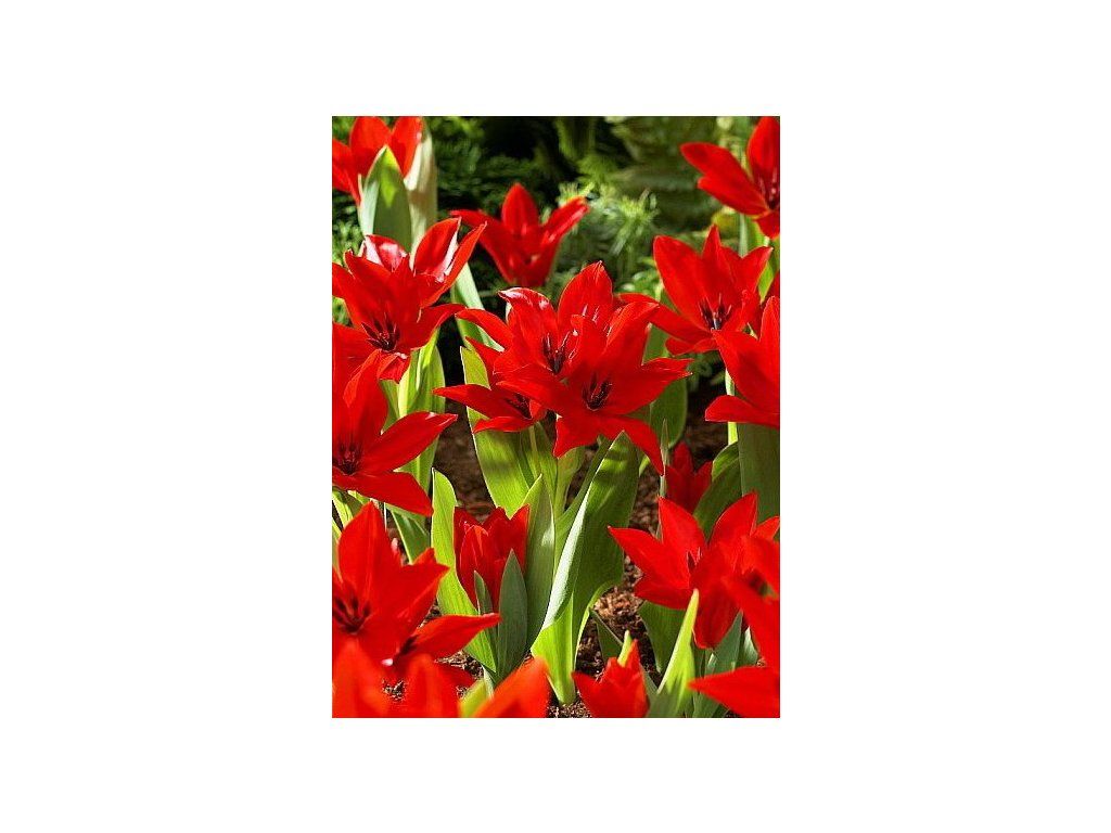 Tento botanický tulipán je nezničitelný. Je vícekvětý, nízký, s výraznými křiklavě červenými květy. Hodí se do skalky, do trávníku i do květináčů.
