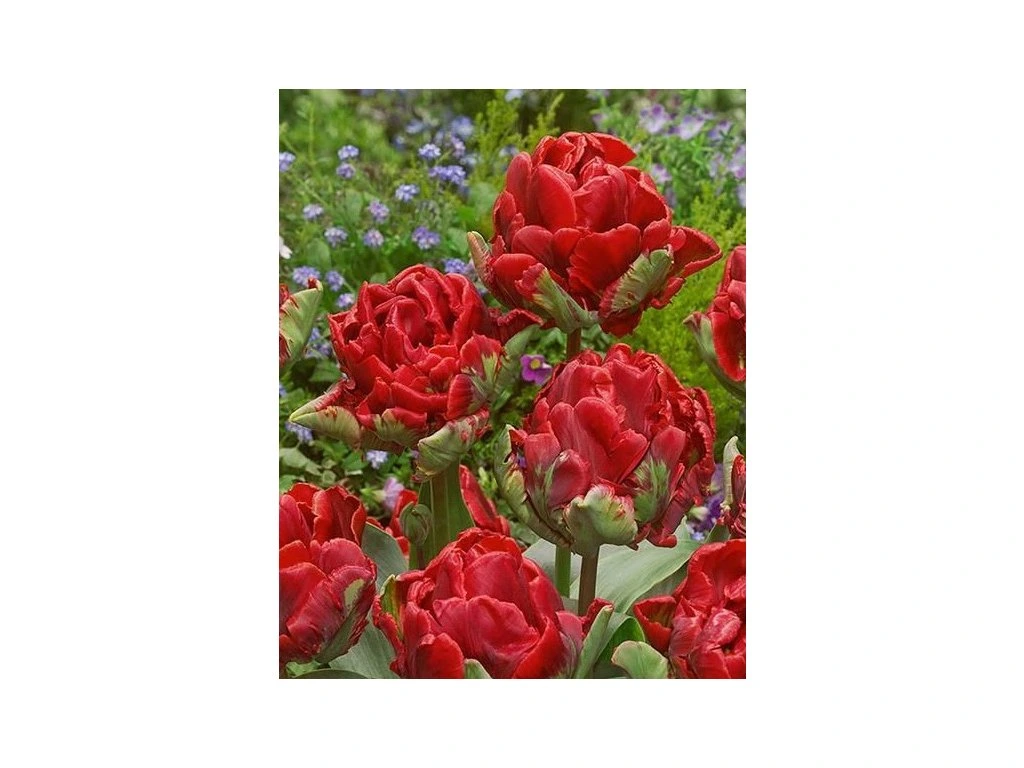 Tento plnokvětý papouškovitý tulipán byl nedávno představen a tvoří velké plné květy v barvách červené až fialové se zelenými plameny. Ohromující řezaný květ, kterého do vázy stačí jen několik. Veliké cibule 12/+ cm !