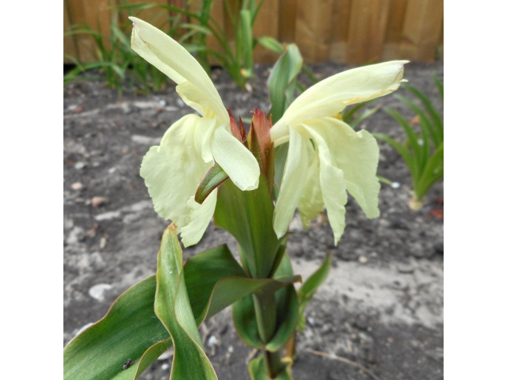 Krémově zbarvený zázvorek, kvetoucí od června, preferuje slunné nebo polostinné místo v záhonu nebo skalce.